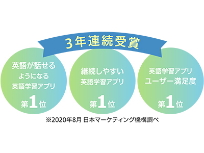 英語アプリのリサーチで3年連続3部門No.1を受賞!